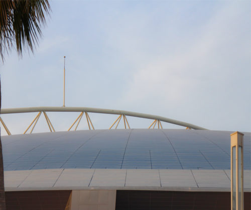 Das Stadion hat eine freie Spannweite von 250 m. Im Inneren der Kuppel wurde eine Zwischendecke ohne Gerüst errichtet. Durch diese innovative Lösung konnten die Kosten gesenkt werden. 55.000 m² Akustik-Zwischendecke wurden mit einem Aufhängesystem, Deckenträgern, einer Zwischenschicht aus Beschichtung und einer Endschicht mit Reynobond-Finish realisiert. Auch für den charakteristischen konischen Turm wurden 1.500 m² Lexan-Paneele und Vorhangfassadensysteme verwendet. Mehr als 4.500 m² glasfaserverstärkte Polyester- und Wabenvordächer zur Verstärkung aller Eingänge.