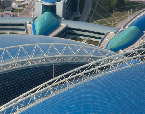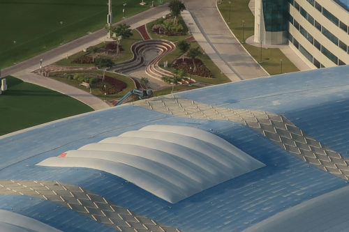 Für den Bau der Kuppel wurde eine Stahlkonstruktion verwendet, die mit Aluminiumplatten von Alcoa Architectural Products verkleidet wurde.