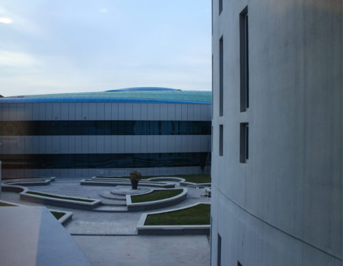 Unter dem charakteristischen schrägen Dach der Kuppel befinden sich außerdem Hörsäle, Klassenräume, wissenschaftliche Labors, Schlafsäle, eine Bibliothek, ein Amphitheater und ein medizinisches Zentrum. Zwischen den beiden Hauptbereichen befindet sich ein zentraler Bereich, der mit speziellen Kommentatorenkabinen für die Veranstaltungen in allen Einrichtungen des Veranstaltungsorts ausgestattet ist.