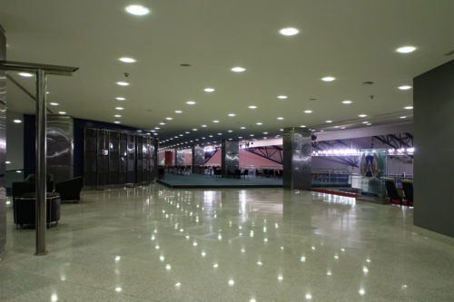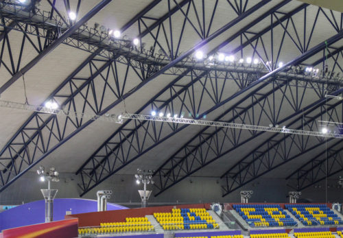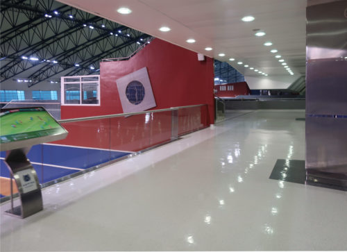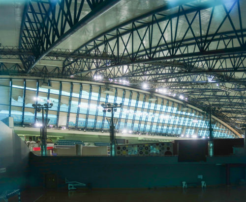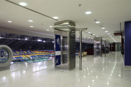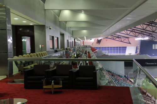 Neben den Sporteinrichtungen enthält diese hochmoderne Stahlkonstruktion auch zahlreiche öffentliche Serviceeinrichtungen wie Restaurants, Erfrischungsräume, Fitnessräume, Whirlpools und eine spezielle VIP-Lounge im zentralen Bereich.
