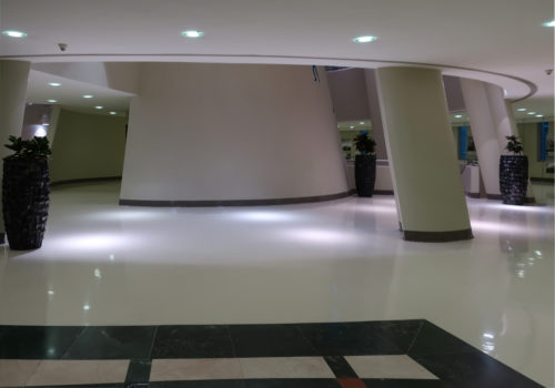 Einige der Sportstätten haben Parkettböden, andere sind mit Gummimischungen ausgelegt.