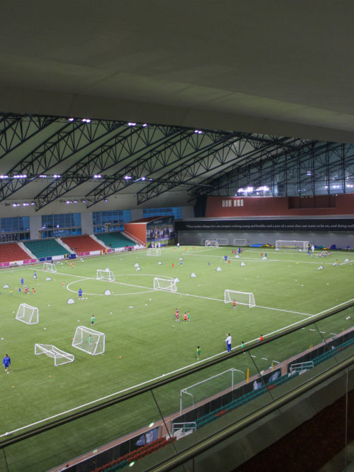Für das Fußballfeld und 6 weitere Bereiche mit einer Fläche von 1700 m² wurden 4-lagige ETFE-Paneele im Dach verwendet, um den natürlichen Lichteinfall zu ermöglichen.