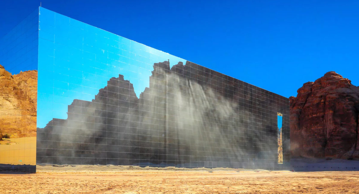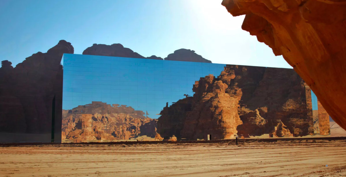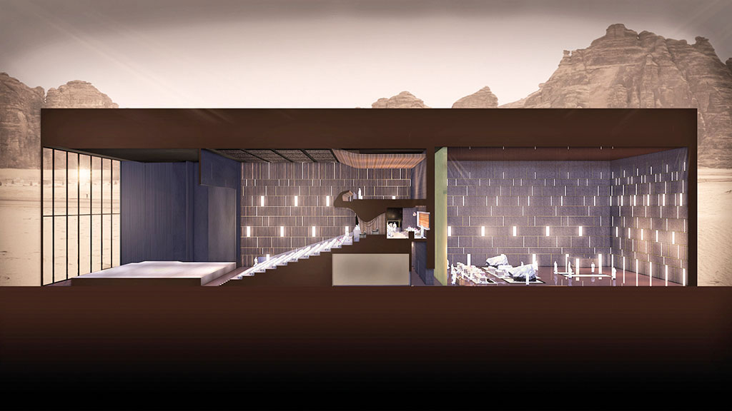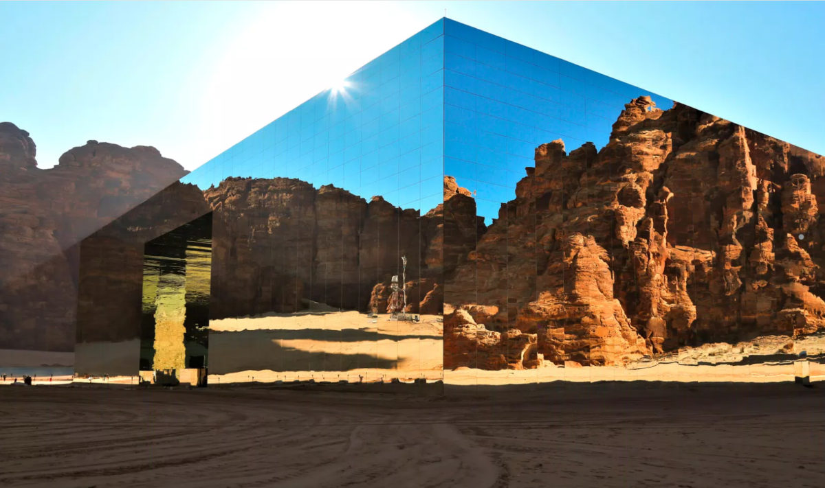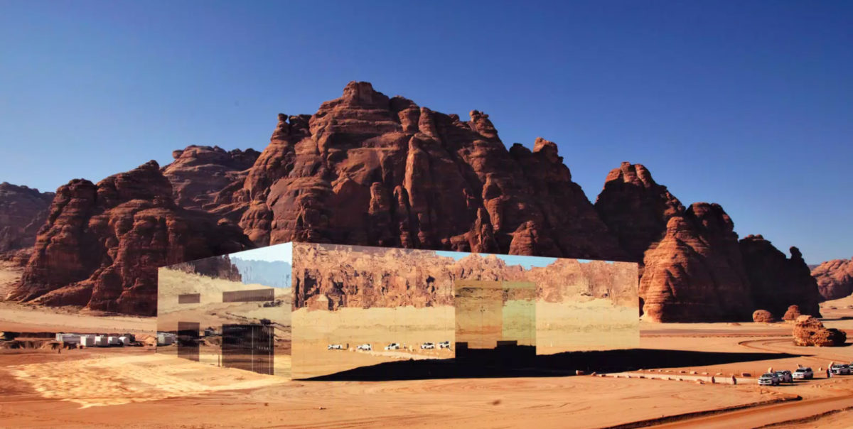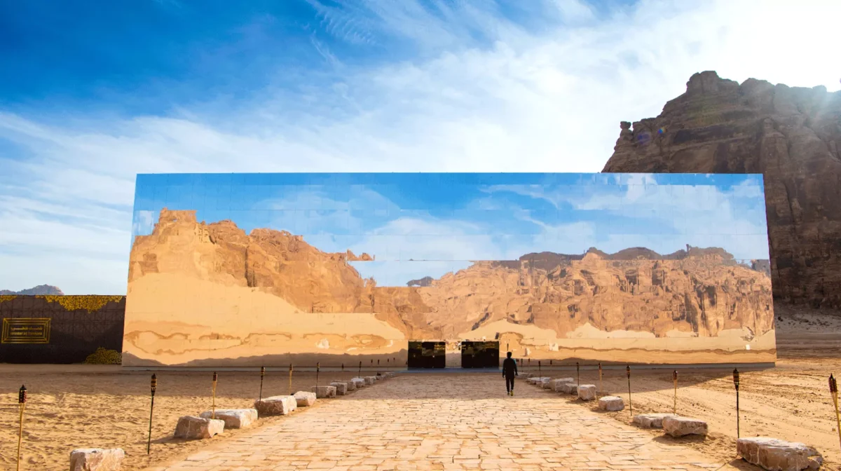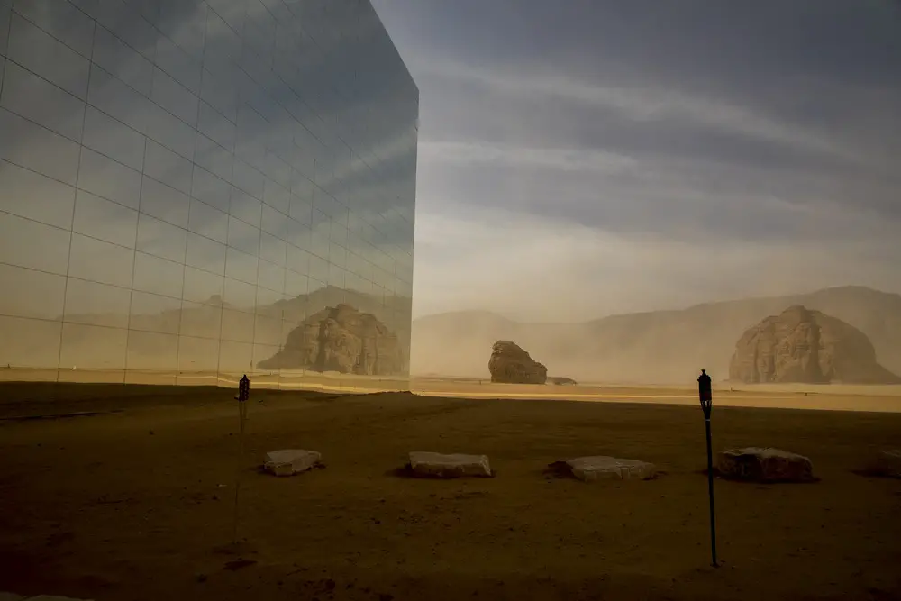 Das von Florian Boje ( Giò Forma, Mailand) entworfene Gebäude wurde von der Landschaft inspiriert, so wie die Landschaft auch die Architektur und Kunst der Zivilisationen von den Nabatäern bis heute inspiriert hat. Das Gebäude erzeugt durch seine verspiegelte Verkleidung einen spiegelnden Eindruck der Umgebung, ein in der Wüste durchaus üblicher Effekt.