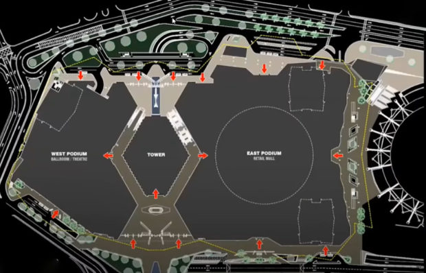 Das Merdeka-Stadion, das sich westlich von Merdeka 118 befindet, bietet sowohl eine Halle für die Stadionbesucher als auch einen offiziellen Zugang zur oberen Ebene der Turmhalle.