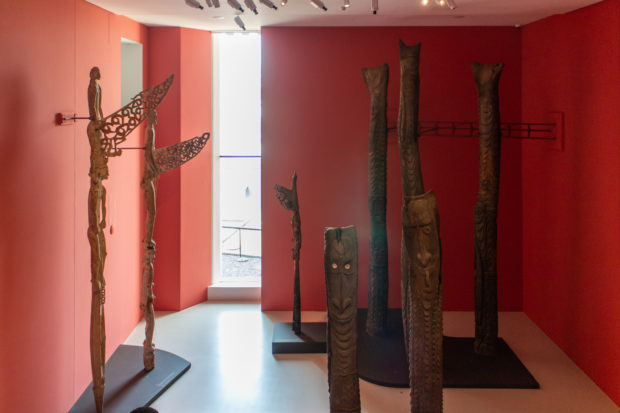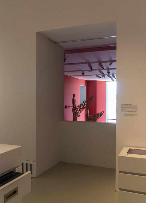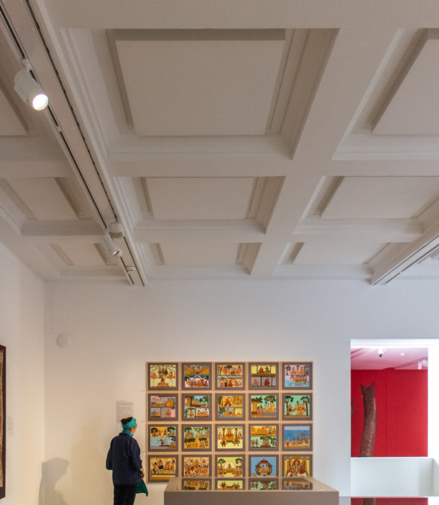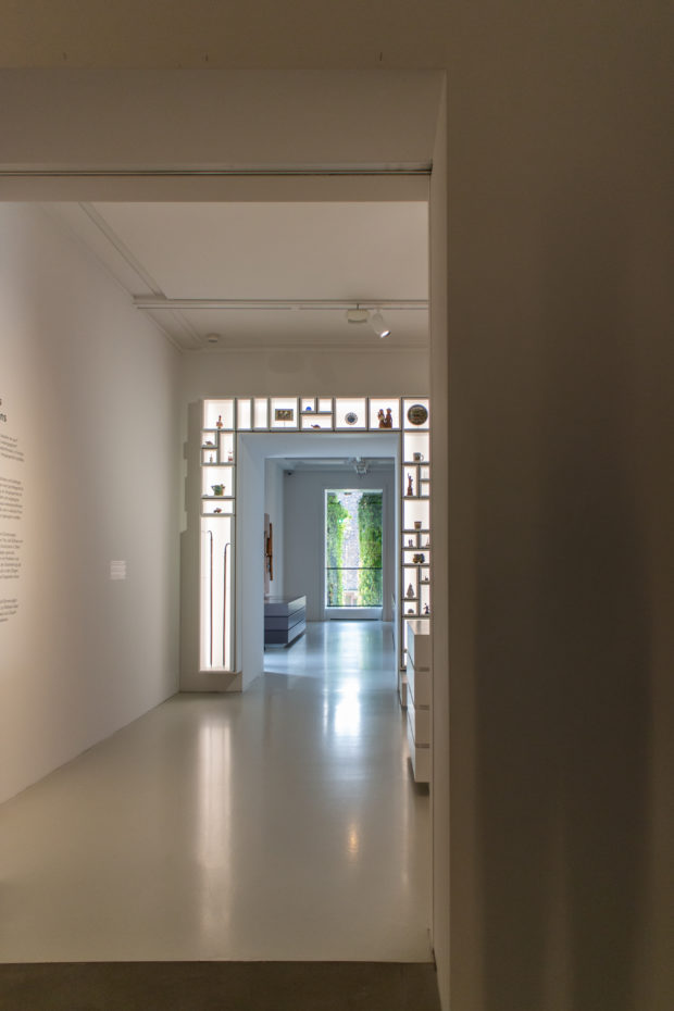 Die Abfolge der Räume folgt auf den drei Etagen der Galerie dem gleichen Muster. Nur zwei Zimmer variieren: im ersten Stock, direkt über dem Eingang, ein großes Zimmer mit Fenstern auf einer Seite mit Blick auf den Innenhof. Darüber wurde eine Decke entfernt, so dass ein zweistöckiger Raum mit einem schmalen Fenster entstand, in dem die größten Objekte der Sammlung ausgestellt werden können. Von diesem Raum, der auch als Orientierungsraum im Museum dient, können die Besucher nach unten schauen.