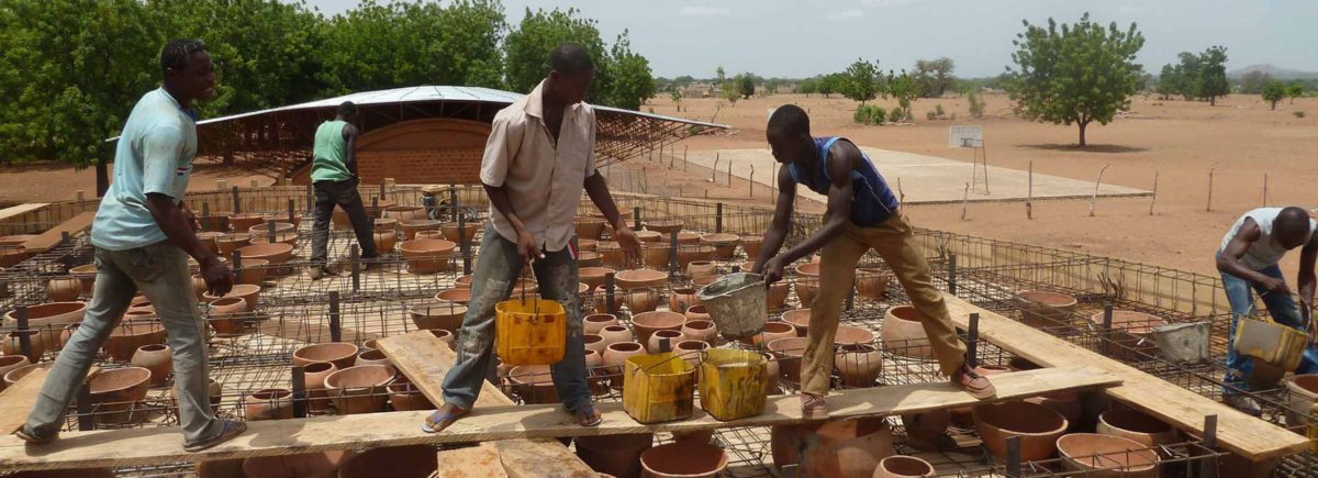 Das Bibliotheksgebäude stellt eine physische Verbindung zwischen der Grundschule und ihrer späteren Erweiterung her, die in Gando dem Heimatdorf von Diebedo Francis Kere, Burkina Faso, 200 km von Ouagadougou, der Hauptstadt von Burkina Faso, entfernt.