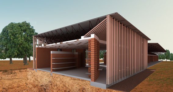 Ziel des Projekts ist es, die Verwendung lokaler Materialien wie Eukalyptusholz, Tontöpfe oder gepresste Lehmziegel hervorzuheben, um die Nutzer zu inspirieren und die lokale Einstellung zur Architektur zu ändern.