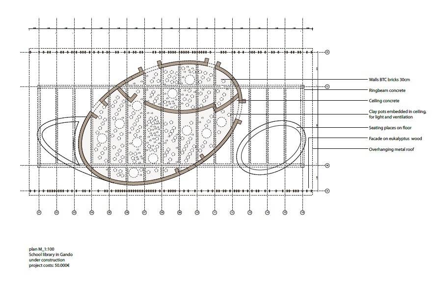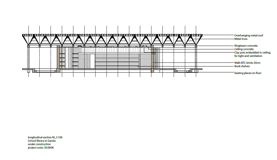 Der Raum soll eine Brücke schlagen zwischen den traditionellen Lehrmethoden zwischen Älteren und Kindern und dem standardisierten Lernumfeld der Schulen. Neben der Unterstützung der Bildungsbedürfnisse der Kinder von Gando soll die Bibliothek auch ein Ressourcenzentrum für das gesamte Dorf sein, indem sie ein wesentlich besseres Umfeld für den Wissenstransfer bietet.