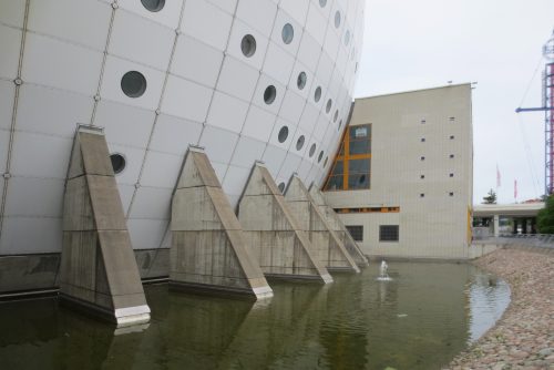 Das Gebäude stellt die Sonne im schwedischen Sonnensystem dar, dem weltweit größten maßstabsgetreuen Modell des Sonnensystems.
