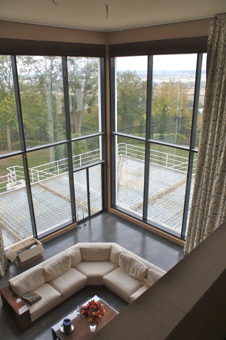 Das Haus befindet sich auf einem 48.500 m2 großen, bewaldeten Grundstück, 32 Rue de la Côté d’Apremont, oberhalb des Dorfes Mézy-sur-Seine, Yvelines, Frankreich, westlich von Paris, mit Blick auf das Seine-Tal.