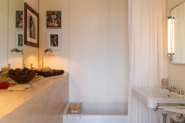 Es ginge also darum, eine für bestimmte architektonische Strömungen typische Idee auf die Spitze zu treiben: die vollständige Verbindung zwischen dem Individuum und der Natur, die nur durch die unvermeidliche Anwesenheit der beiden Bäder und des Kleiderschranks unterbrochen wird.