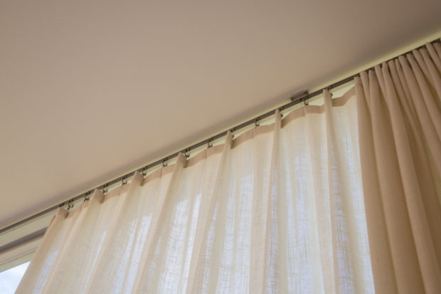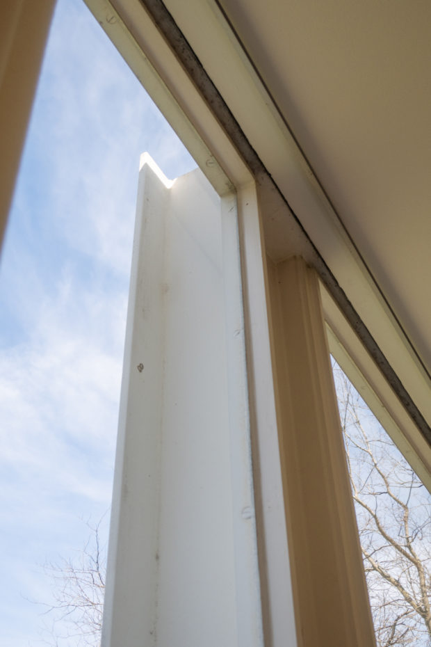 Die Paneele, die die Fassade des Hauses bilden, bestehen aus Einfachglas mit einer Dicke von 0,64 cm, das von Stahlpfosten mit W-förmigen Winkeln und Stäben getragen wird. Ein durchgehender Wagenvorhang sorgt für Privatsphäre und Schatten im Inneren des Hauses.