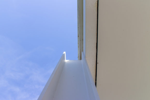 Alle Stahlsäulen, die die beiden Plattformen tragen, haben einen quadratischen Querschnitt und wurden nach dem Einbau sandgestrahlt und poliert. Anschließend wurden sie weiß gestrichen, so dass ihre Schweißnähte praktisch unsichtbar sind.