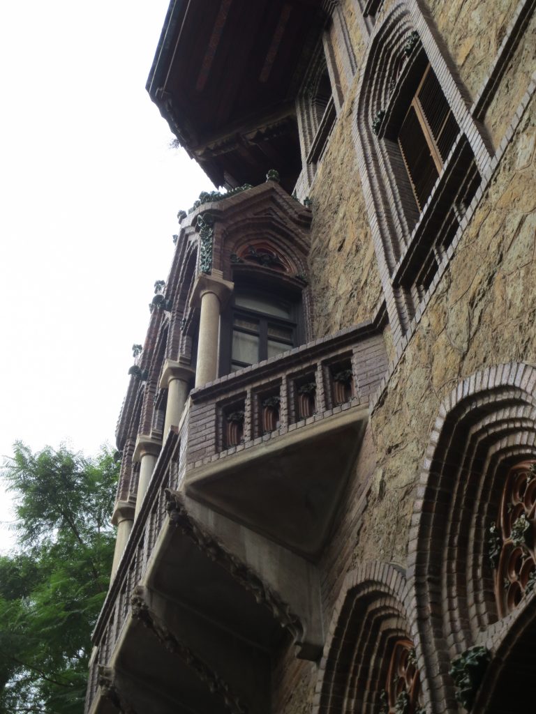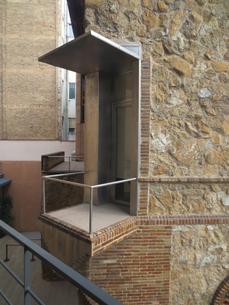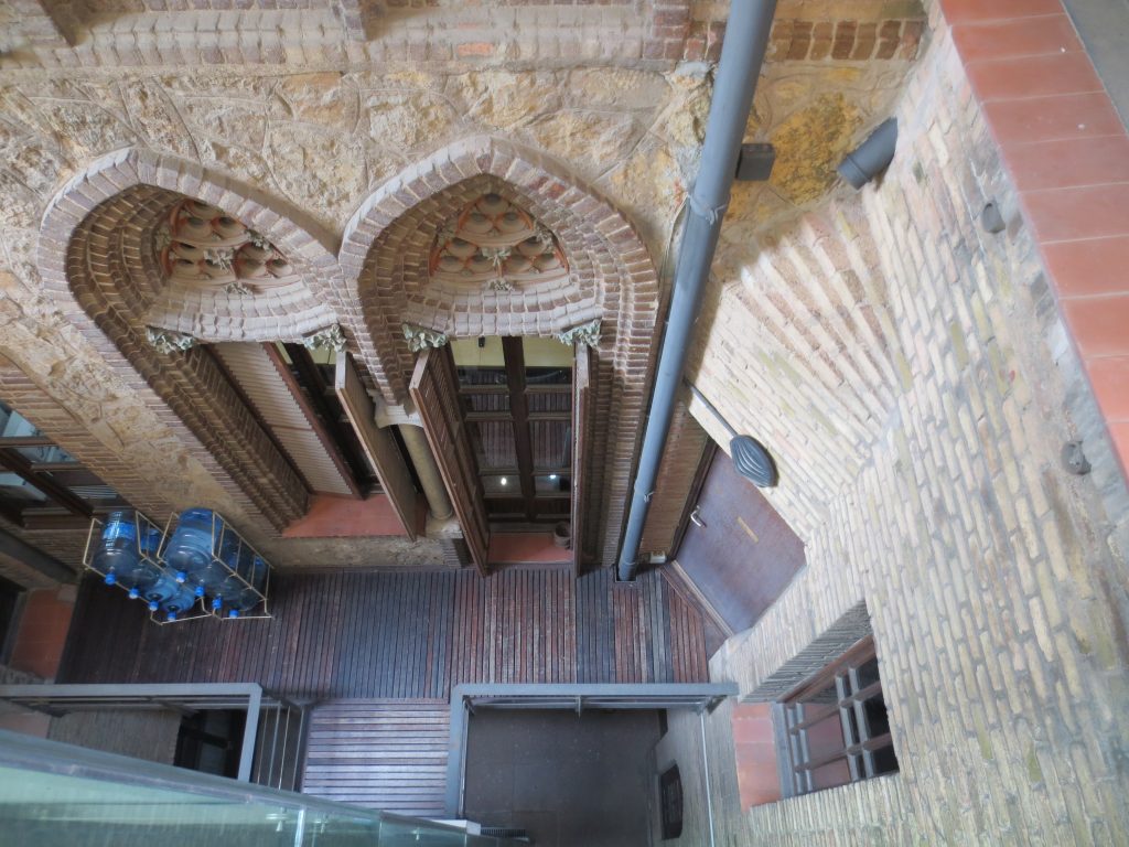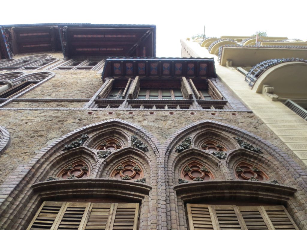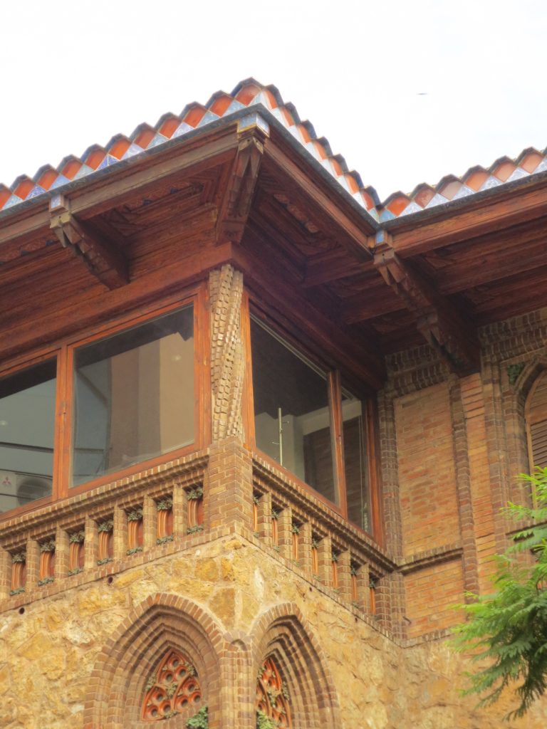 In allen Baukörpern verwendete der Architekt Mauerwerk, Sichtziegel, Holz oder Keramik mit gotischem Einschlag sowie die Hauptöffnungen und kombinierte sie mit mittelalterlichen Elementen wie den Dächern mit großen Überhängen oder der Ecktribüne an der Gran Vía, die zusammen mit der Kanzel über dem Garten, bei der die konstruktive Zersetzung des Kapitells eine spektakuläre geometrische Abstraktion darstellt, eine Vorahnung der künftigen Arbeiten ist, die im Laufe der Jahre in freitragendem Mauerwerk ausgeführt werden sollten.