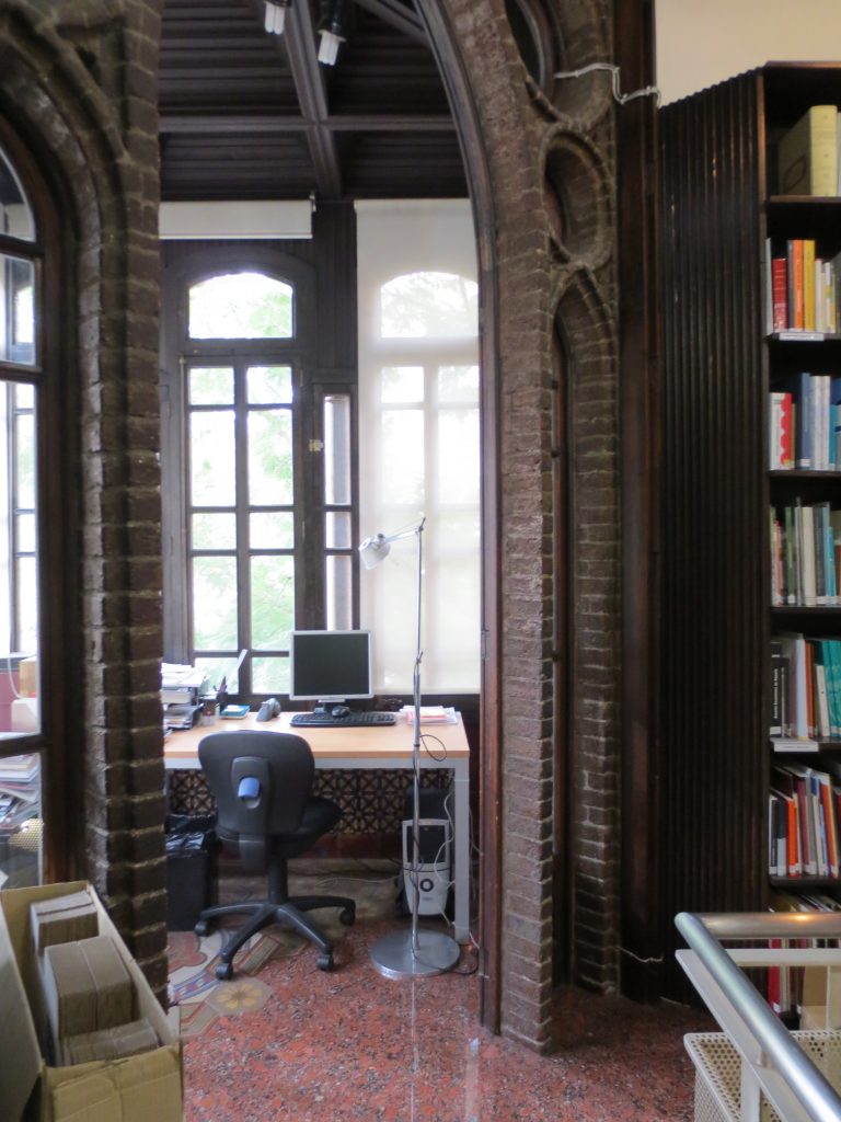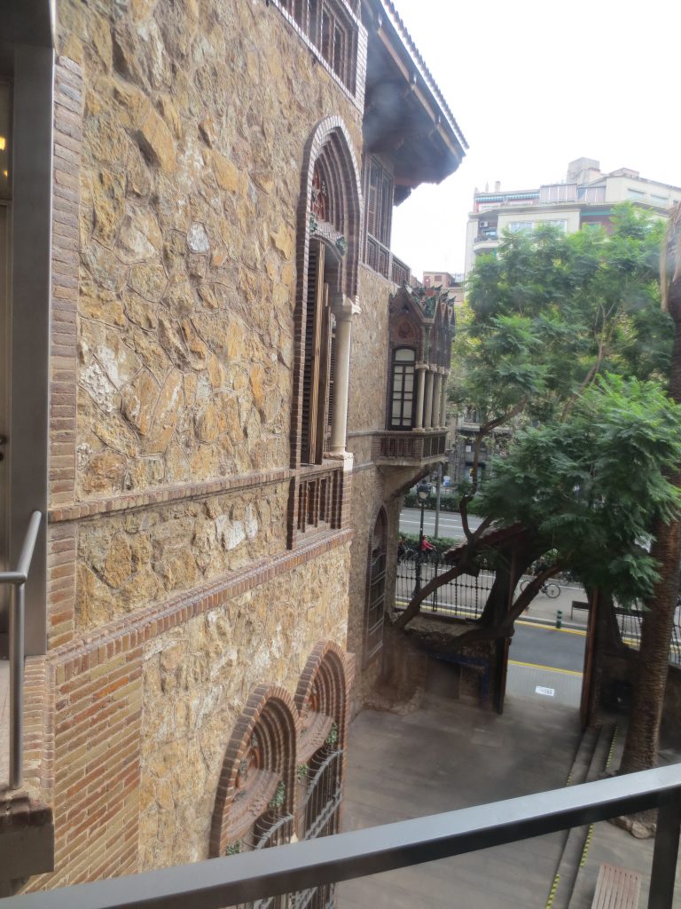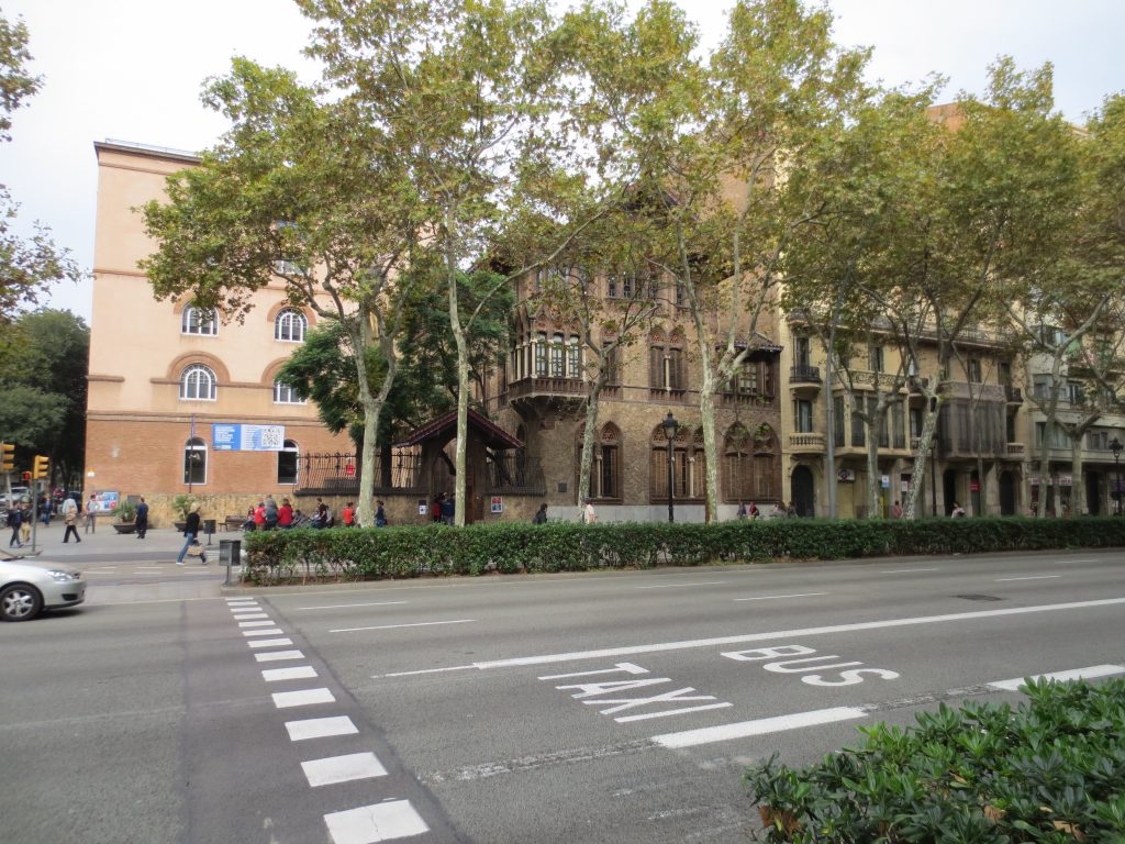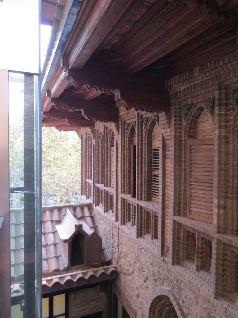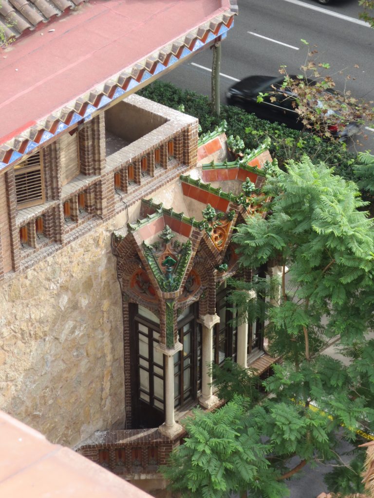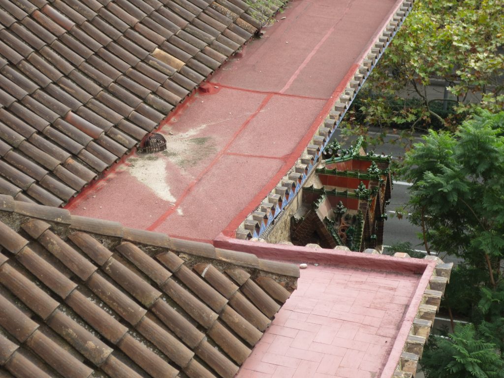 In allen Baukörpern verwendete der Architekt Mauerwerk, Sichtziegel, Holz oder Keramik mit gotischem Einschlag sowie die Hauptöffnungen und kombinierte sie mit mittelalterlichen Elementen wie den Dächern mit großen Überhängen oder der Ecktribüne an der Gran Vía, die zusammen mit der Kanzel über dem Garten, bei der die konstruktive Zersetzung des Kapitells eine spektakuläre geometrische Abstraktion darstellt, eine Vorahnung der künftigen Arbeiten ist, die im Laufe der Jahre in freitragendem Mauerwerk ausgeführt werden sollten.