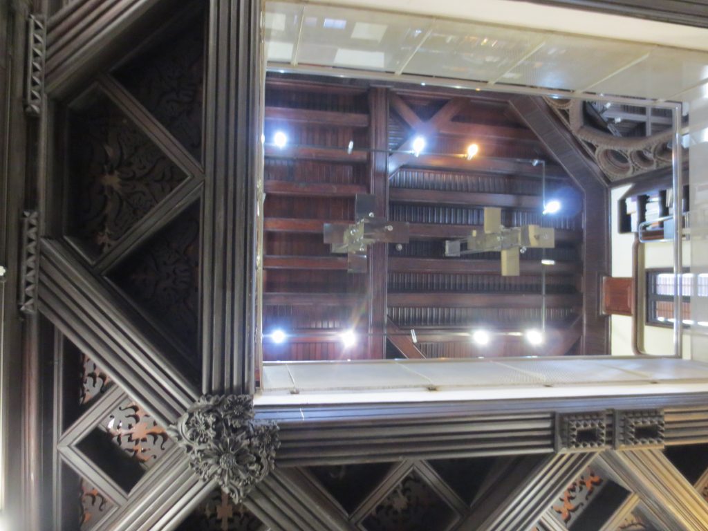 Das Dachgeschoss, das an das Innere einer Kirche erinnert, ist offen gestaltet und hat ein schräges Satteldach, das von Holzbindern getragen wird. Durch die zahlreichen Öffnungen unterschiedlicher Form und Größe, die die Wände durchdringen, fällt Tageslicht ein.