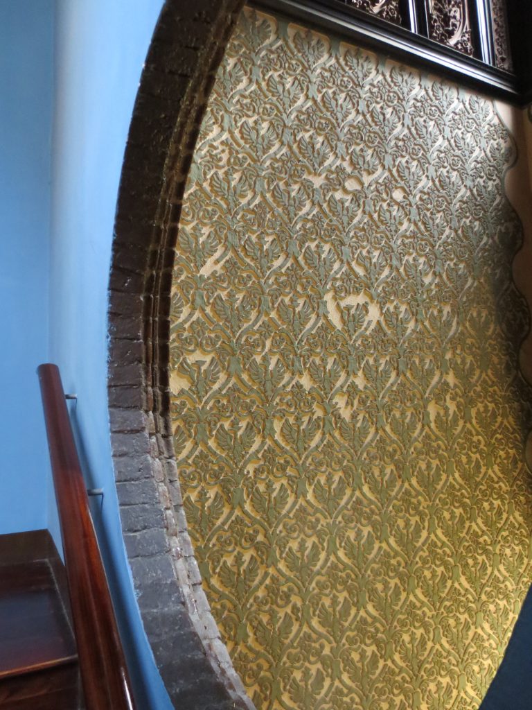 Von der Haupttür aus gelangt man über einige Stufen in einen Flur, um den herum sich alle Räume des Erdgeschosses befinden, und zu einer imposanten, an der Seitenwand angebrachten Treppe, die in das Obergeschoss und das Dachgeschoss führt; diese Holztreppe erhält Licht von einem seitlichen Innenhof. Im Erdgeschoss befanden sich die Küche, das Esszimmer, das Bad, die Speisekammer und andere Räume, im ersten Stock die Schlafräume und andere Zimmer und im dritten Stock das Dachgeschoss, das den Plänen zufolge zum Teil als Turnhalle und zum Teil als Lager und Schlafräume für das Personal genutzt wurde.
